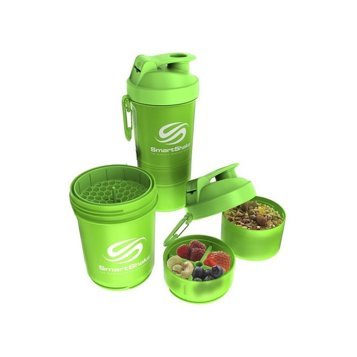 Mais brilhante do que nunca, apresentamos a nova série NEON. Com a nova série NEON você combina toda a funcionalidade de sua Smart Shake com moda, criando o acessório e garrafa perfeita. Com duas ou mais Smart Shakes da série Neon você pode personalizar sua garrafa com as peças que são permutáveis. Combine com suas roupas, sapatos, humor, personalidade e estilo de vida. A Smart Shake possui três compartimentos separados em que você facilmente armazena várias porções de suplementos nutricionais ou acessórios. Por exemplo: Proteína, aminoácidos, Vitaminas, cápsulas, pré e pós-treino, protetor bucal, mp3, chave do carro, brincos, aliança, etc. RECOMENDAÇÕES. - A Smart Shake detém 600 ml até a borda, e a parte dos compartimentos 120 ml e 160 ml; - Rosca grossa extra na tampa; - Revolucionário filtro côncavo hexagonal, que se encaixa na tampa, proporcionando a total dissolução do pó; - Mosquetão para guardar a chave do carro ou prender sua Smart Shake na mochila; - A Smart Shake possui capacidade para 600 ml em seu compartimento principal; - Um compartimento com divisórias que permite separar até 4 tipos de cápsulas diferentes; - Um compartimento para armazenar, aproximadamente, 70 gramas de suplementos em pó. BENEFÍCIOS: - Seguro para sua saúde, plástico não-tóxico, livre de BPA e DEHP; - Seguro para colocar em freezer, máquina de lavar louça e forno microondas; - O produto é reciclável e feito de plástico não-tóxico; - Produto Patenteado; - Projetado na Suécia *ANVISA: Registro ISENTO NO MINISTÉRIO DA SAÚDE conforme resolução RDC 27 de 06 de Agosto de 2010 anexo 1.