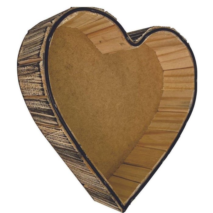 Coração de Madeira Rústico Médio com Palha,laço e Embalagem 22x24x5cm
