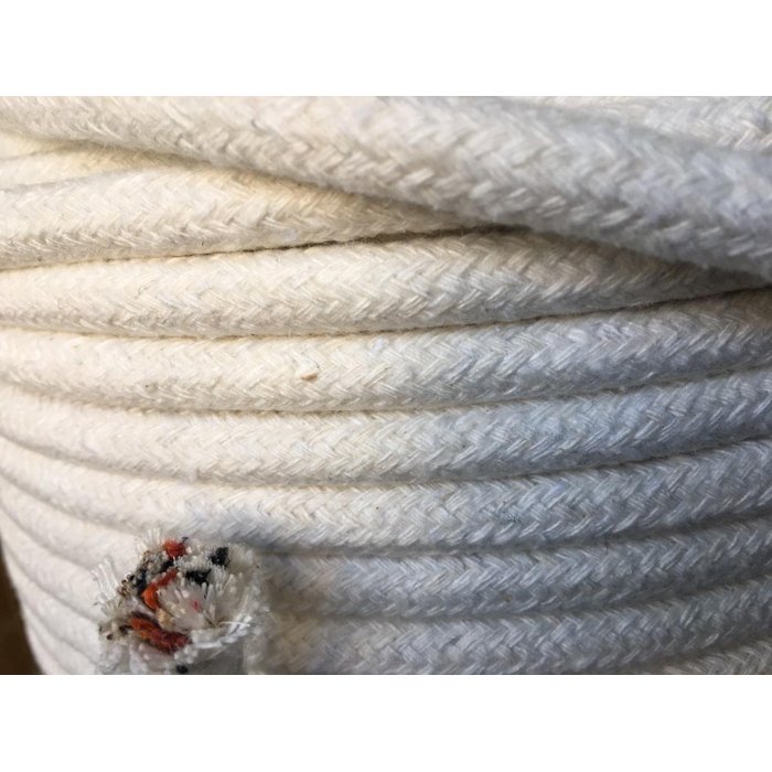 Corda com alma de fios de algodão e sintéticos, revestida de fios de algodão cru.