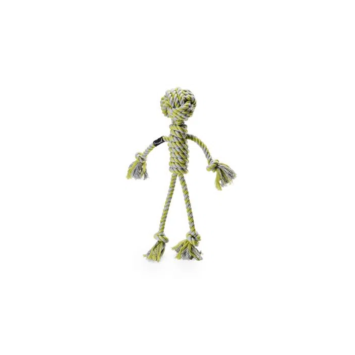 Brinquedo feito de corda natural no formato de um boneco. Cheio de nós!