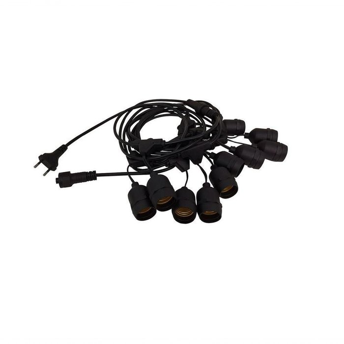 Cordão varal de luzes 10 metros 20 Soquetes E27 Preto IP65 Kian