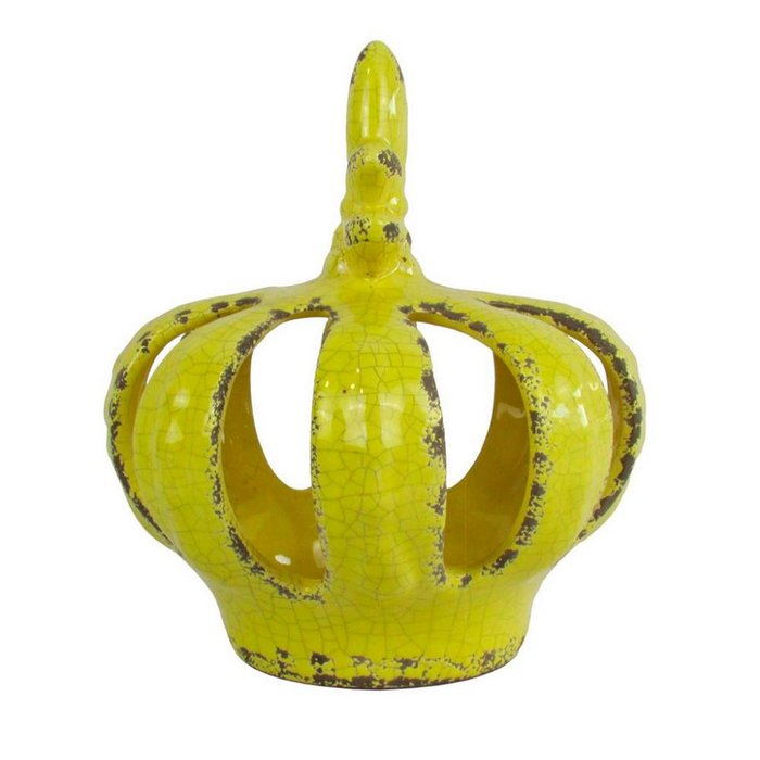 Coroa Em Cerâmica Amarela Grande Que tal deixar a decoraçao da sua casa ainda mais encantadora com essa linda coroa? Ideal para sua sala e para seu decor. confere um ar de requinte e sofisticação a sua decoração. Possível, ainda, decorá-la com flores e doces em seu interior. A utilização de coroas na decoração de salas, quartos e ambientes de trabalho desponta como tendência atual. imensões do protudo: Altura: 26 cm Largura: 35 cm Comprimento: 30 cm Caraterísticas do protudo: Material: Ceramica Cor: Amarelo Marcar: Jemima Casa