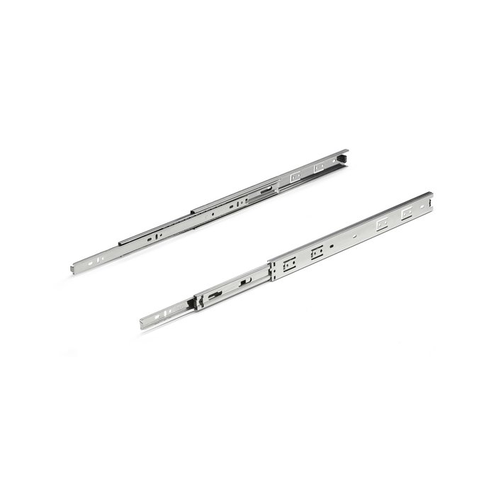 Corrediça Telescópica 400mm 35kg - HARDT Descrição do Fabricante Corrediça telescópica com deslizamento através de esferas de aço Perfil externo de 37mm Extração: Total + 25mm Capacidade de carga: 35kg Comprimentos: 250, 300, 350, 400, 450 e 500mm Acabamento: zinco eletrolítico + verniz protetor