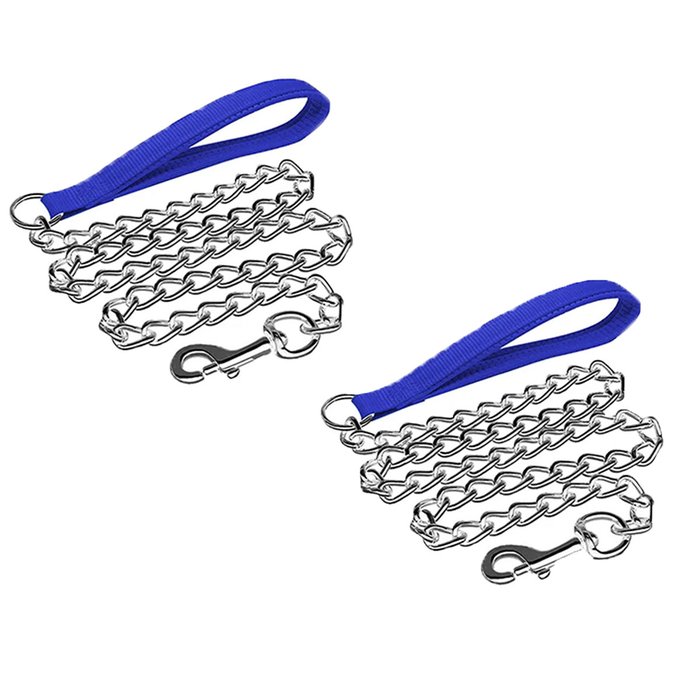 Corrente Para Cachorros Pet Cao Animais Estimaçao Kit 2 Uni Guia 2.0mmx120cm Prende Coleira Passeio Azul