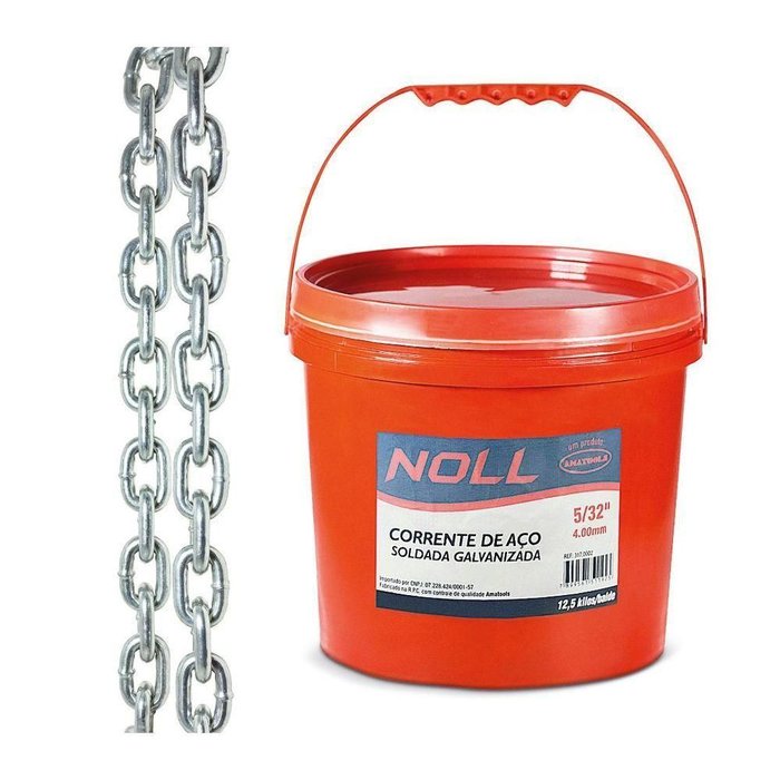 O QUE É A CORRENTE SOLDADA GALVANIZADAA 'corrente soldada galvanizada' refere-se a uma corrente de metal, geralmente feita de aço, que passou por um processo de galvanização para protegê-la contra corrosão. A galvanização é um processo em que o metal é revestido com uma camada de zinco para impedir a oxidação e prolongar a vida útil do produto. A corrente soldada é feita unindo os elos de metal por soldagem, o que proporciona uma forte conexão entre eles. Essa corrente é comumente utilizada em aplicações industriais, agrícolas e de construção, onde é necessária resistência e durabilidade, além de proteção contra os efeitos corrosivos do ambiente. COMO UTILIZAR A CORRENTE SOLDADA GALVANIZADAA corrente soldada galvanizada pode ser utilizada em uma variedade de aplicações, dependendo das necessidades específicas do usuário. Devido à sua resistência à corrosão, é frequentemente empregada em ambientes externos ou sujeitos a condições adversas. Para utilizar a corrente soldada galvanizada, primeiro é necessário determinar o comprimento necessário de corrente para a aplicação desejada. Em seguida, a corrente pode ser cortada com uma ferramenta adequada, como um alicate de corte ou uma serra manual, conforme necessário. Após cortar a corrente no comprimento desejado, ela pode ser fixada ou instalada conforme a aplicação, seja para segurar cargas, delimitar áreas, suspender objetos ou outras finalidades. É importante seguir as instruções de segurança ao manusear e instalar a corrente, garantindo que esteja corretamente fixada e que seja capaz de suportar a carga ou o uso pretendido. DESCRIÇÃO DA CORRENTE SOLDADA GALVANIZADA- Elos galvanizados; - Corrente soldada para uso geral, não calibrada, indicada para arraste e amarração. Não utilizar para elevação de cargas, pessoas ou animais. Nunca utilizar em aplicações onde a abrasão também seja fato crítico na corrente, como balanças, gangorras, 'chapéu mexicano', entre outros. - Tratamento zincado branco - maior a resistência à oxidação/ corrosão. ESPECIFICAÇÕES DA CORRENTE SOLDADA GALVANIZADA- Bitola (pol): 7/16 - Embalagem: Balde 25Kg - Kg/Metros: 2,55 - Metro/ Embalagem: 9,80 - Força de Ruptura / Kg: 4.600 - Força de Trabalho / Kg: 2.300 - Largura Interna x Compr. Interno (mm): 19x48 - Und. de venda: 1 - Marca: NOLL; - Código:317.0007 Distribuidor Autorizado para todo o Brasil. O Grupo Piveta Ferramentas é uma empresa com mais de 30 anos no mercado e líder no segmento de Máquinas e Ferramentas para Usinagem, contamos com mais de 25 Mil produtos para melhor lhe atender. É importante ressaltar também que nossa atuação não se limita ao setor de Usinagem Mecânica, nossa variedade de produtos nos permite atender a vários setores como Agronegócio, Embalagem Plástica, Retifica de Motores, Usinas de Açúcar e Álcool, Manutenção Industrial (Usinagem e Caldeiraria), Mineração, Área de Fertilizantes, Frigoríficos, Usinagem Médio para Grande Porte e Automação Industrial. Desta forma fortificando e ajudando no desenvolvimento econômico do nosso país.