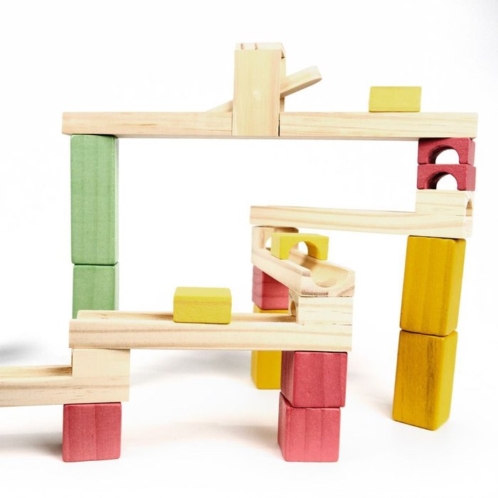 São 35 peças com formatos e cores vibrantes para criar vários trajetos diferente, testar suas habilidades e soltar a imaginação em uma divertida corrida. Feito de madeira de reflorestamento e pintada com tinta atóxica, possui o Selo de Segurança do Brinquedo do INMETRO. Indicado para crianças a partir de 5 anos.