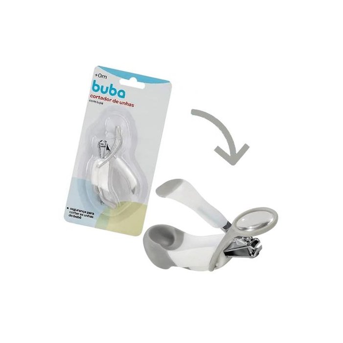 O Cortador de Unha com Lupa da Buba, foi especialmente desenvolvido com bordas suaves e lupa de aumento para cortar facilmente as unhas do bebê sem riscos de acidente.