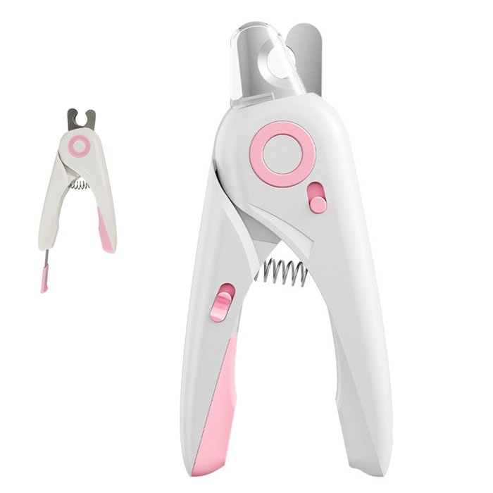 Cortador de Unha Gato Pet Cao Cachorro Lixa de Unha Lanterna Led Seguro Resistente Eficiente Confort Branco e Rosa