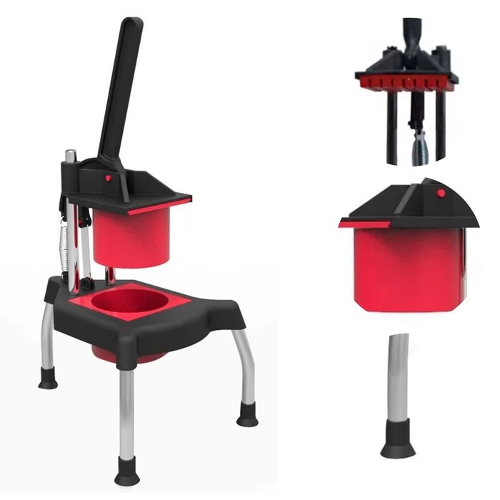 - Facas em Aço Inox de 10 mm e área total de corte de 7,8 x 7,8 cm