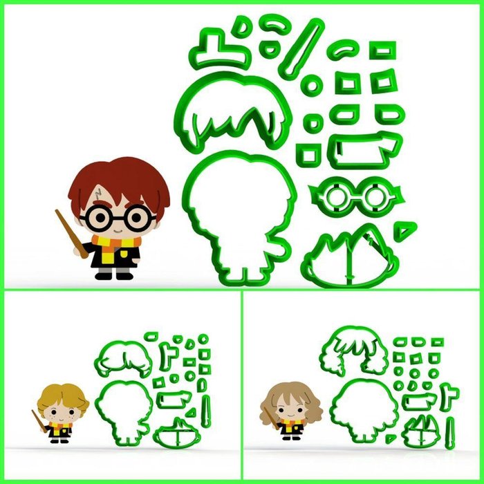Cortador Kit Harry Potter Cute 3 Personagens Modulares Tamanho 6 Cm