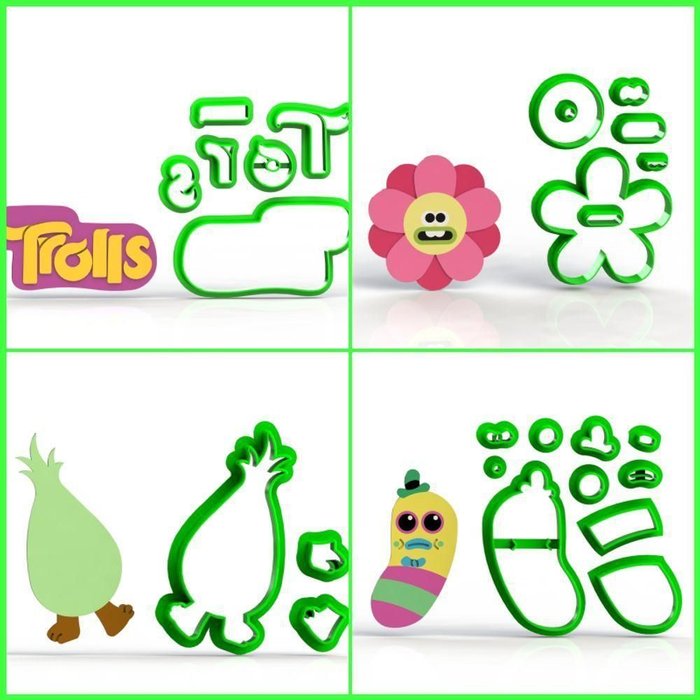 Cortador Kit Trolls - 4 Modelos Modulares Mod 1 Tamanho 5 Cm