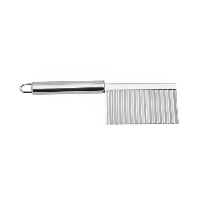 Sua lâmina possui ondulações para que os alimentos cortados fiquem com cortes ondulados dando a impressão de "ondas". Seu cabo é feito do mesmo material, redondo e confortável.
