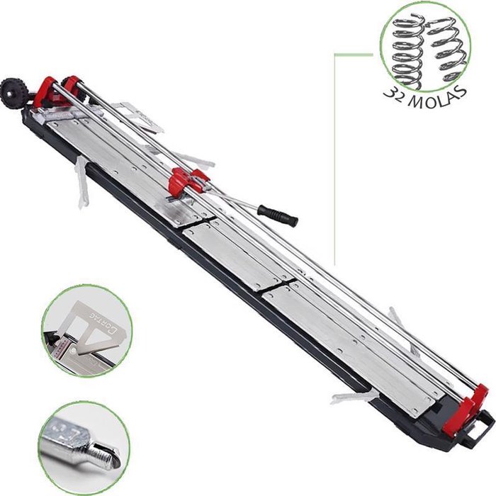 O Cortador Mega 155 da Cortag é indicada para o corte de pisos cerâmicos, porcelanatos de grandes formatos com até 15mm de espessura e até 155 cm de comprimento.