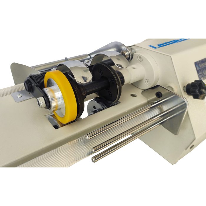 Possui painel de comando integrado na máquina para ajuste de velocidade e opção para executar acionamento da máquina por pedal ou modelo automático.