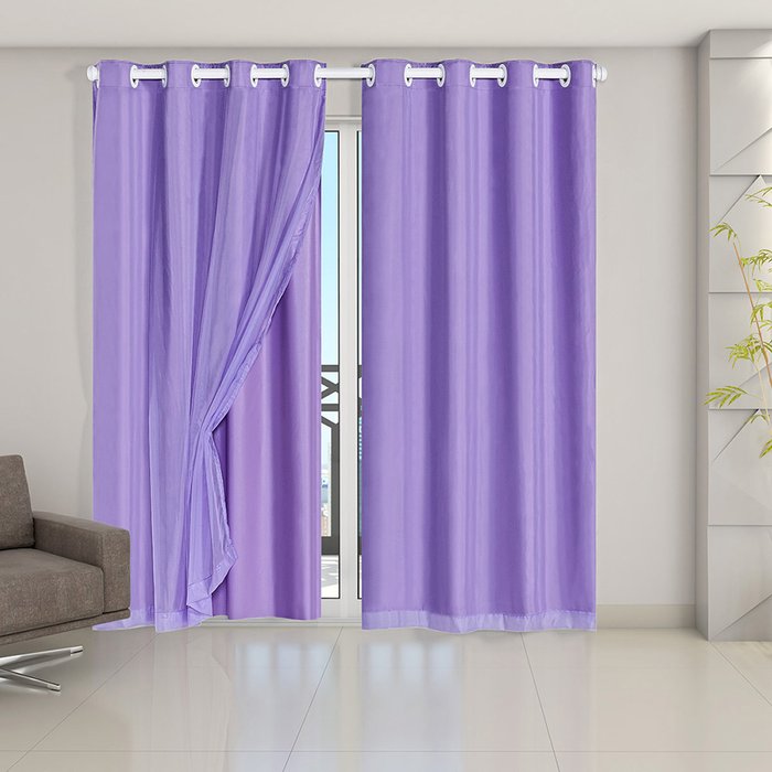 Cortina 100% Blackout C/ Tecido Voil 2,80m X 2,30m Blecaute Pvc Sala Quarto Janela Corta Luz Lilás