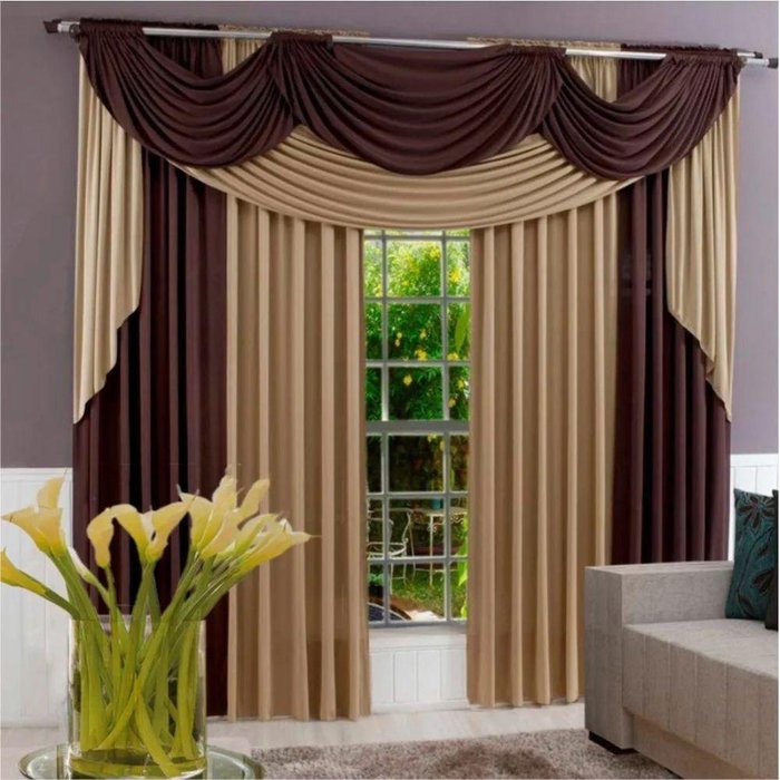 Cortina Ametista para Varão em Malha 4,00m X 2,60m Sala Quarto - Tabaco Tabaco