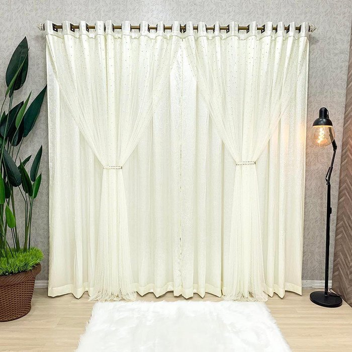 Cortina Aurora Cetim Amassado Tule Pérolas 3,00x2,50m Sala Quarto Varão 3m - Palha