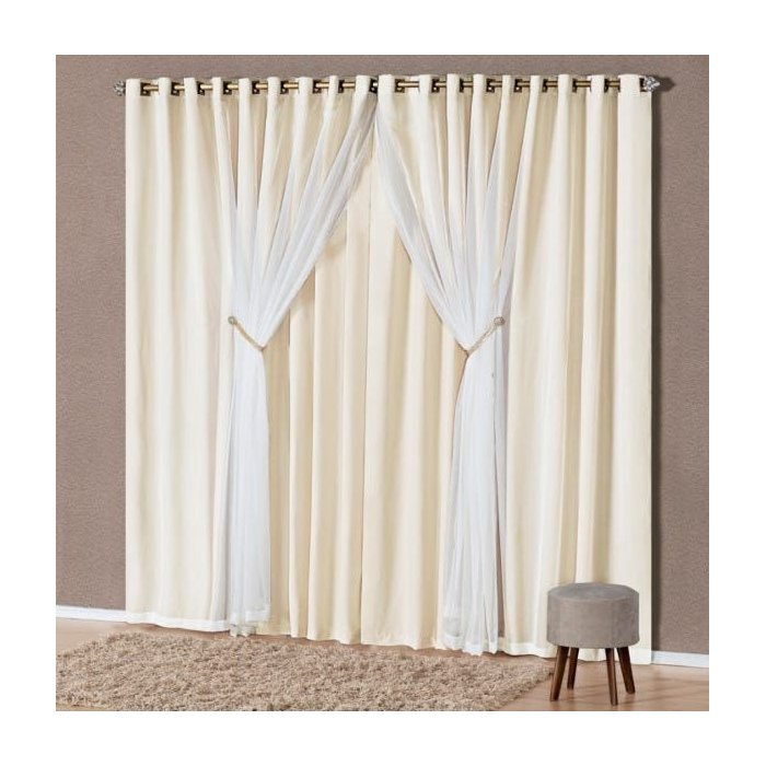 Cortina Bélgica Tecido Duplo 2,00x1,70m Re9casa para Sala ou Quarto - Cor Palha