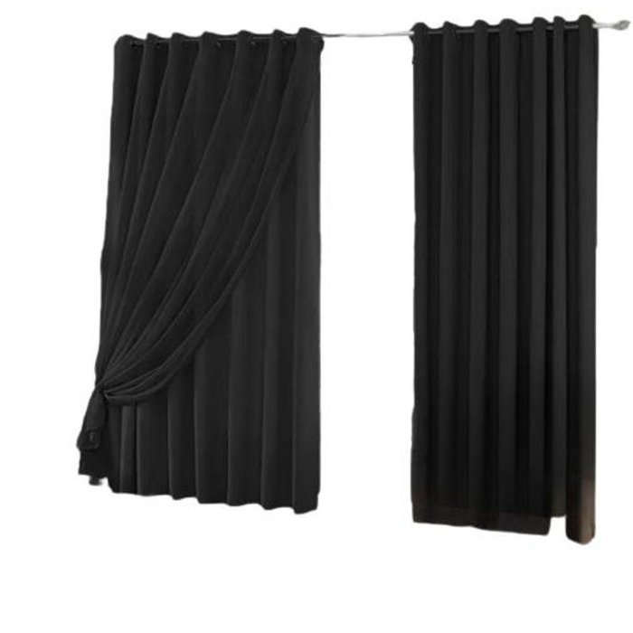 Cortina Blackout com Voil 2,80x2,30 para Trilho Suíço Preto Preto
