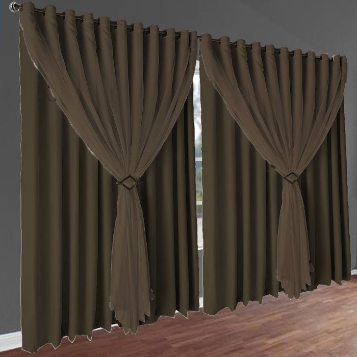 cortina blackout em tecido Livia 5,00 x 2,70 c/voal marrom marrom