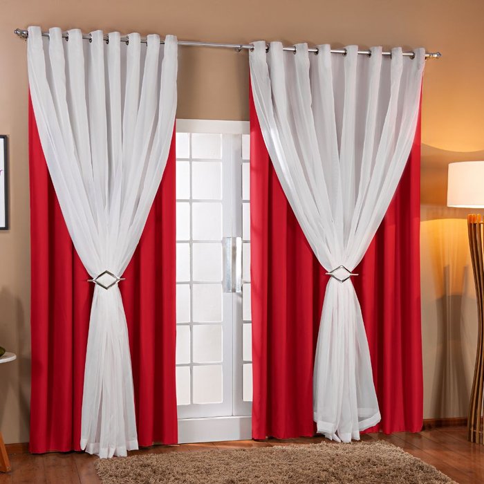Cortina Blackout Tecido com Voial Elios Cromado e Presilha 4.00m X 2.80m:vermelho/branco
