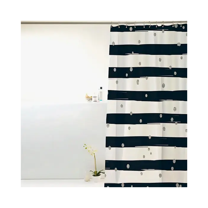 Cortina Box para Banheiro Pvc 198x180cm Antimofo - Listra Preta Póa