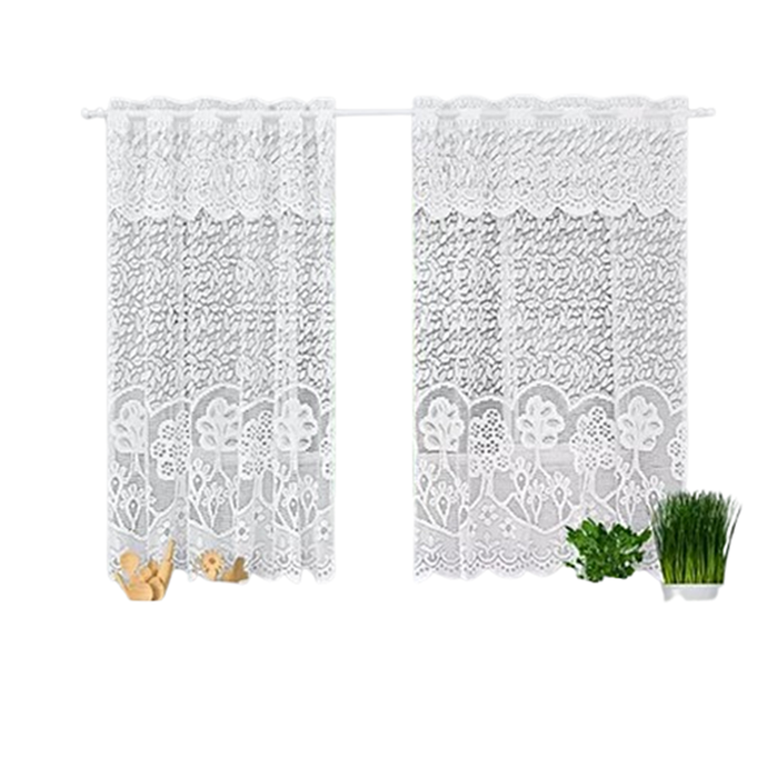 - Contém: 01 Cortina para cozinha em renda para varão com bandô