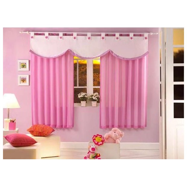 Cortina em Voil Liso e Forro Poliéster com Alça para Varão