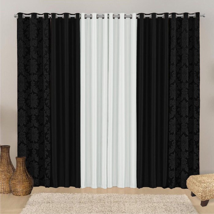 Cortina Degradê para Trilho Suisso Max Jacquard e Oxford 2,00 x 1,80m Sala Quarto - Preto Preto