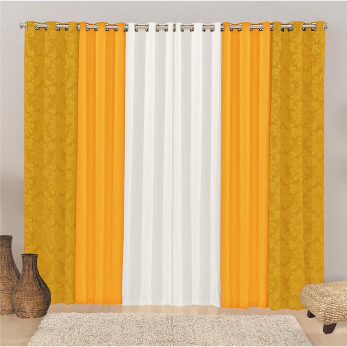 Cortina Degradê para Trilho Suisso Max Jacquard e Oxford 4,00 x 2,60m Sala Quarto - Amarelo