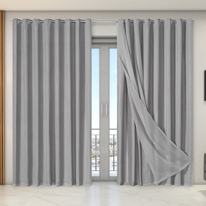 Cortina Dual Forro Voil Gaze Belga 2,70m X 2,30m Luxo Sala Quarto Porta Balcão Semi Blecaute Cinza
