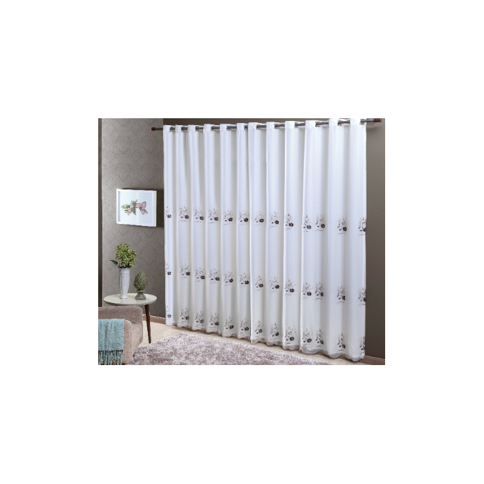A Cortina Dupla Doha vai deixar a sua sala elegante como você merece, ela é composta com tecido leve facilitando na hora de lavar e secar, seus ilhoses vem na cor prata e em circulo,os desenhos em formato de flores são bordados a máquina.