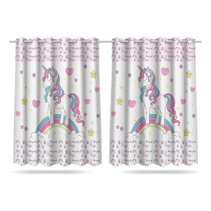 Cortina Estampada Infantil Unicornio 260x150 Quarto Menina