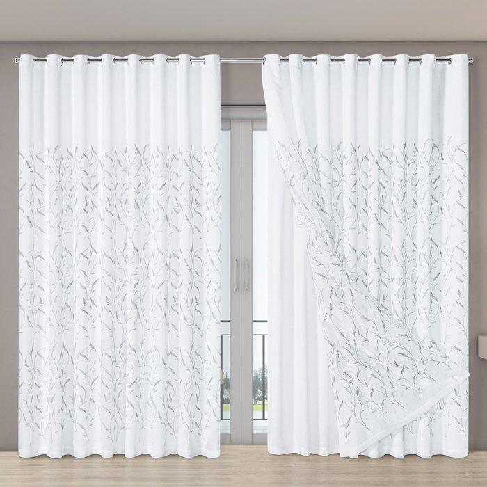 Cortina Forro Microfibra Voil Gaze Bordado 5,6 X 2,7 Leaves Branco