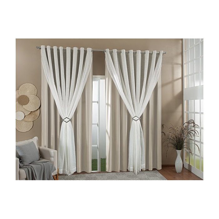 Cortina Gaze De Linho Forro Blackout 3,00x2,20 Sala E Quarto Palha/Marfim