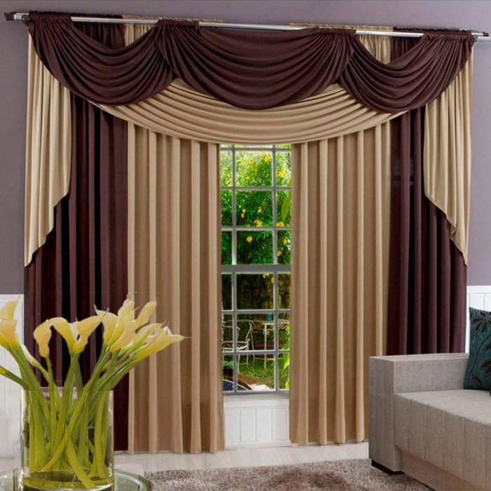Cortina Imperial 3,00m X 2,60m Tecido Malha Gel Para Varão Duplo Sala Quarto - Marrom Com Avelã