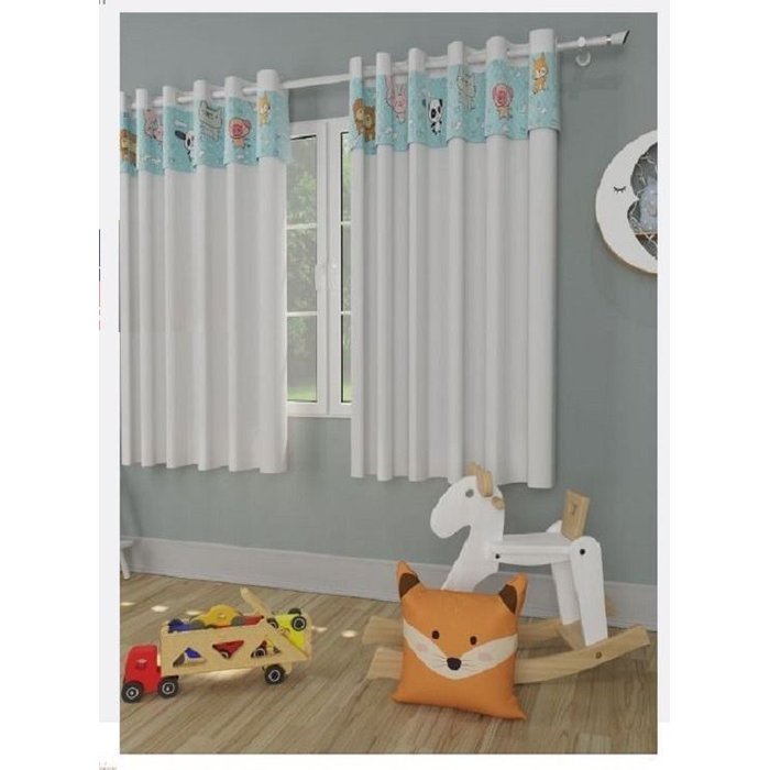 Uma cortina especial criada especialmente para o quarto das crianças. Confeccionada com tecido 100% poliéster. Possui um bando acoplado com estampa de animais com qualidade na pigmentação criando um ambiente divertido e alegre.