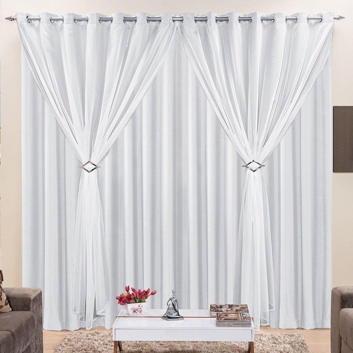 Cortina Jéssica 2 Metros Branca Tecido Microfibra Com Voal Clássica Cromada