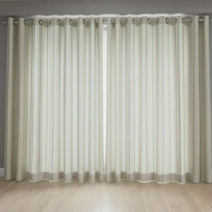 Cortina Linho Flamê Bege Listrado Marrom 5,00x2,50 com Ilhós Preto