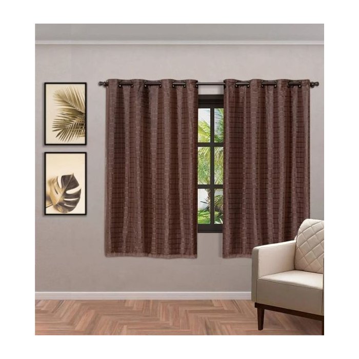 Cortina Moderna Blackout 2,00 x 1,40 Metros Com Voal Xadrez: Tabaco