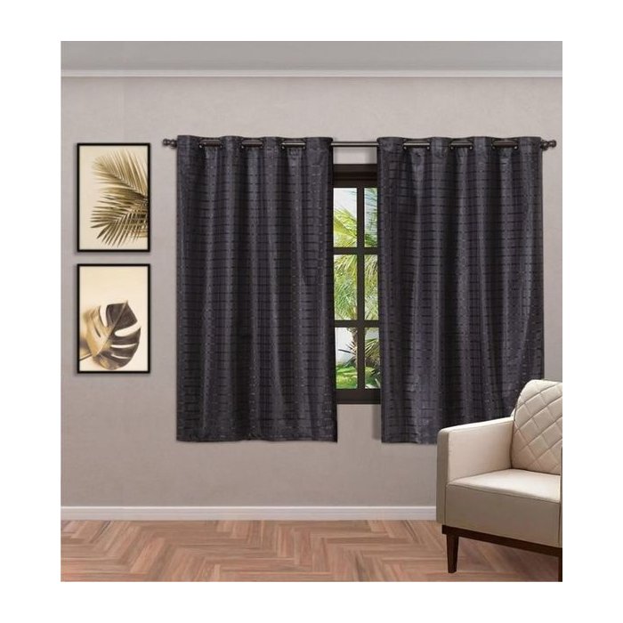 Cortina Moderna Blackout 2,80 x 1,60 Metros Com Voal Xadrez: Preto Preto