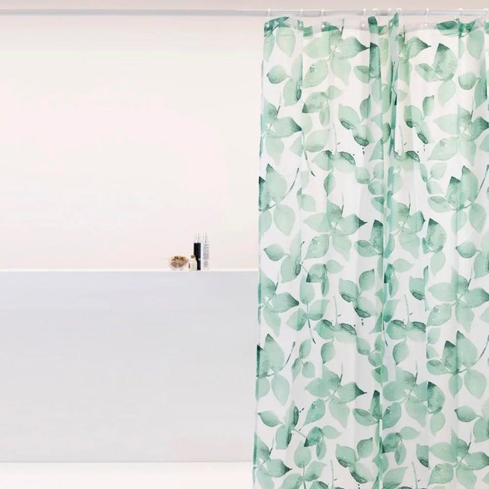 Cortina para Box Banheiro Antimofo Poliéster 198x180cm - Folhagem Verde
