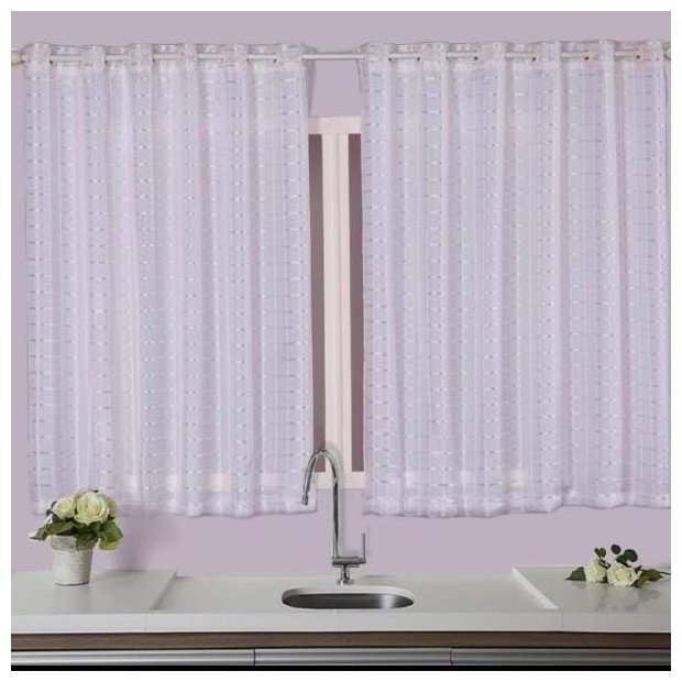 As Cortinas Pérolas, são compostas por tecido Voil quadriculado com forro em poliéster.