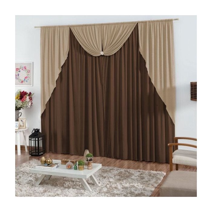 Cortina para Janela 2,00m X 1,80m Sophia Cáqui com Tabaco