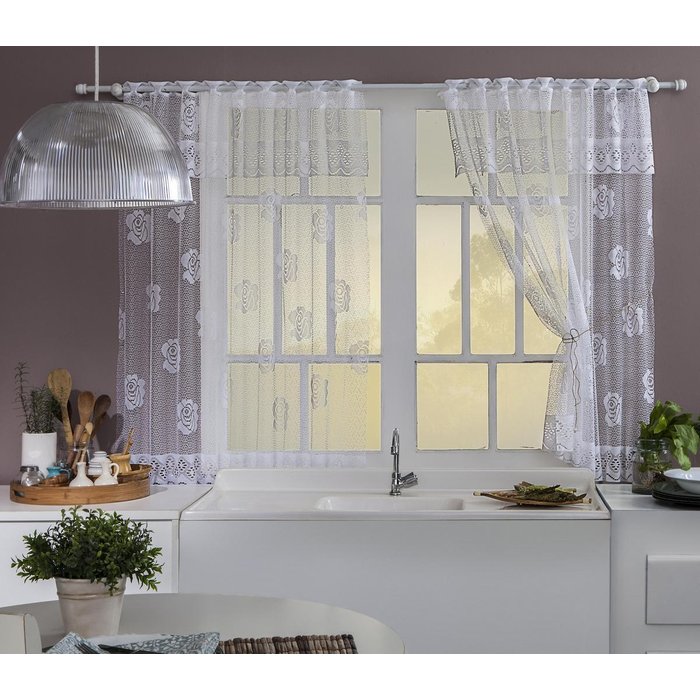 Cortina para Janela da Cozinha Renda Desenho de Rosas Branca