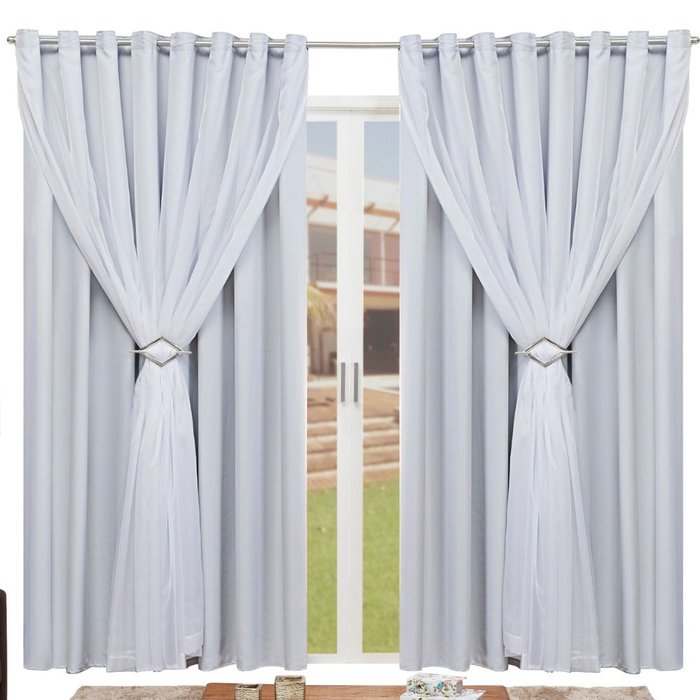 Cortina para Sala Blackout Tecido Com Voil + Presilha Ilhós Cromado 4,00m X 2,60m:Gelo Gelo