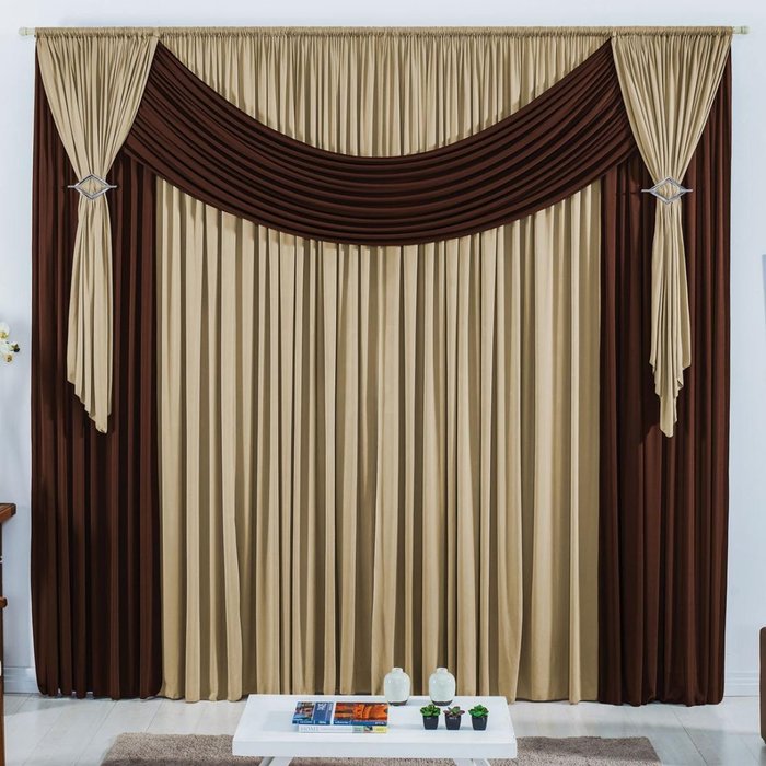 Cortina para Sala com Bando e Presilha 4,00m X 2,80m Franci:Tabaco/Avelã