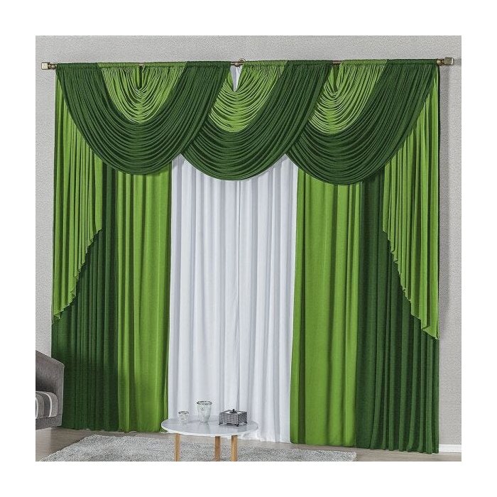 Conteúdo da Embalagem: 01 Cortina 2,00m x 1,70m. Consumo: 5,60m. Composição: Tecido 100% Poliéster. Cor: Verde.