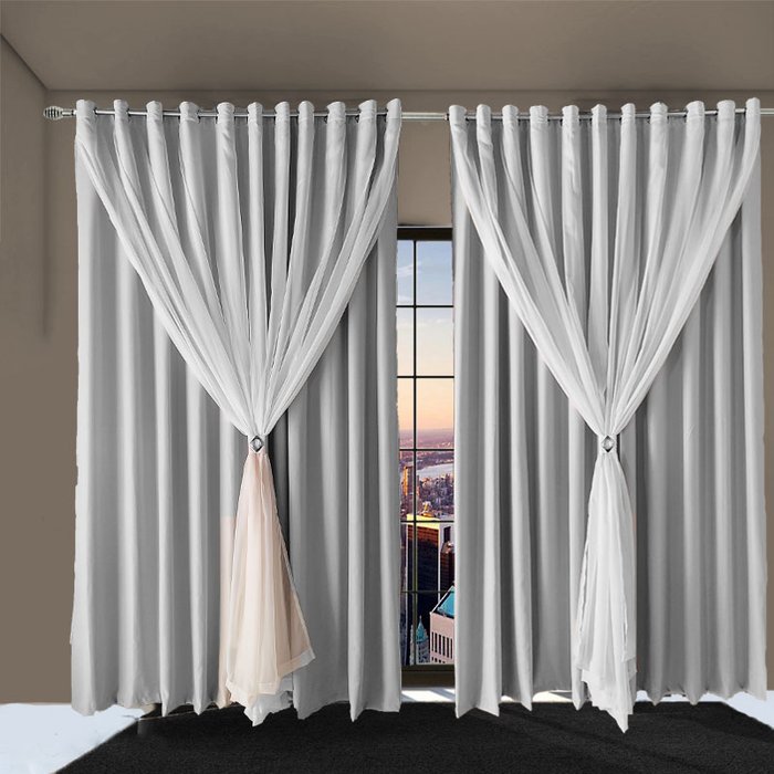 Cortina de blackout em tecido para Corta Luz 5,00 metros x 4,00 Com Voil Voal xadrez Para Sala Quarto