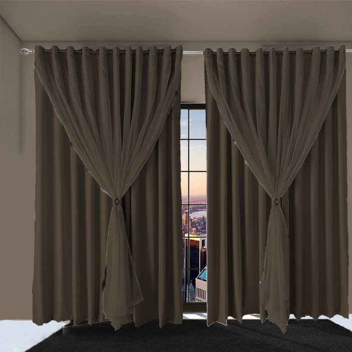 Cortina de blackout em tecido para Corta Luz 5,00 metros x 3,20 Com Voil Voal xadrez Para Sala Quarto